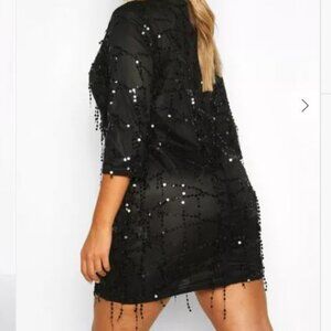 Boohoo PLUS TASSEL SEQUIN SHIFT DRESS UK 16 // US 12 NWT