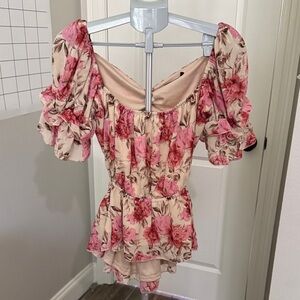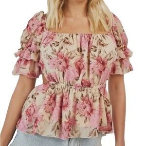 Featuring a flared waistline which accentuates your curves and creates a feminine, hourglass silhouette, peplum tops are our must-have this season. Mix it up with a peplum hem top and your go-to skinny jeans for an effortless look that brings the fire or step into fit and flare tops in a range of cuts and colours to keep things cool and casual as you go about your daily business. No matter how you wear yours, our peplum tops are a whole vibe.Style: TopDesign: FloralFabric: WovenSleeve Length: Cap Sleeve