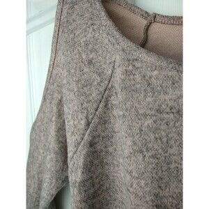 Women's lightweight pink brushes knit heather cold shoulder pullover in good condition. Long sleeve curved Hemline.