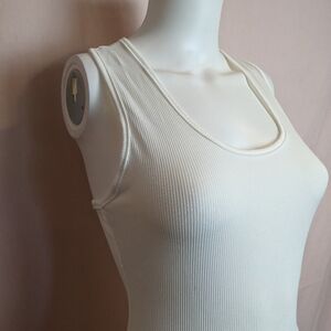 Boohoo Ribbed white racerback Bodysuit. New with tags. Bust: 14" across