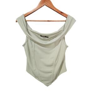 Boohoo Plus Bardot Dip Hem Corset Sage Size 12 NWT