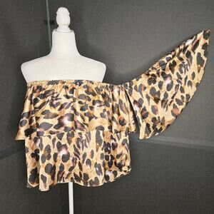 Boohoo Plus NWT Leopard print Bardot top one shoulder 20 brown tan black