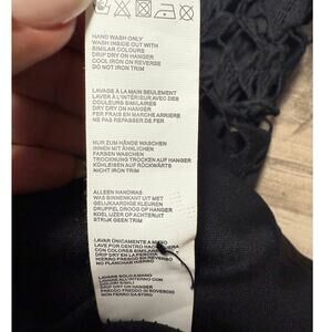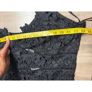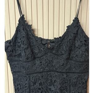 Features: Crochet lace overlay, strappy design, fitted silhouette, midi length, machine washable