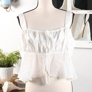 Boohoo Plus Tie Front Ruffle Hem Satin Top - Size 16 - NWT