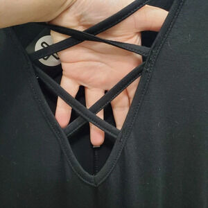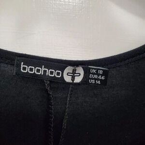 Boohoo Plus Woman's Gothic Black Cage Neck Flutter Sleeve Dress NWT US Size 14