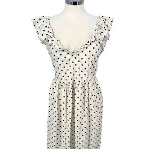 Boohoo Polka Dot Ruffle Midi Dress Open Back Tie Detail White Black Size 8 NWT