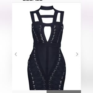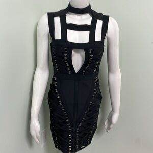 Boohoo Premium Helen Cage Neck Bandage Bodycon Black Dress NEW size 6