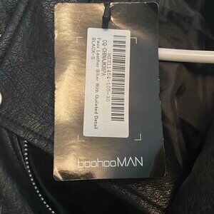 Boohoo Quilted Sleeve Leather Look Biker Jacket