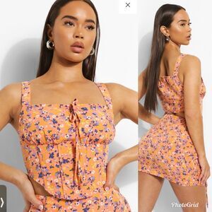 Boohoo RUCHED BUST CORSET TOP & MINI SKIRT 2 piece set CO-ORD