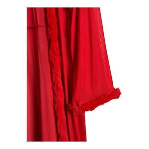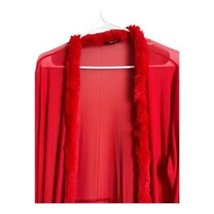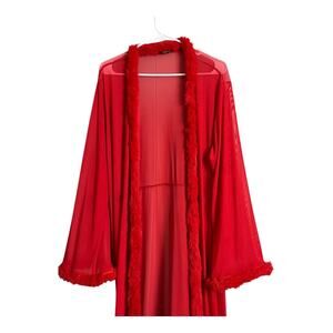 Boohoo Red Sheer Robe Wrap Faux Fur Trim Boudoir Photo Vamp Lingerie OS
