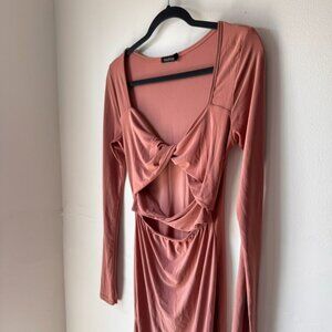 Boohoo Rose Pink Cut-Out Bodycon Dress | Long Sleeve | Size US 8