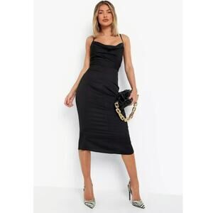 Boohoo Satin Cowl Neck Lace Up Fish Tail Midi Dress (US Size 4)