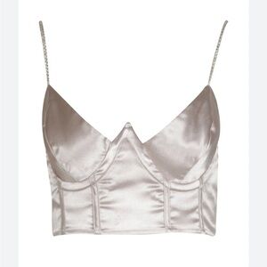 Boohoo Satin Diamante Strap Corset Top Silver 6