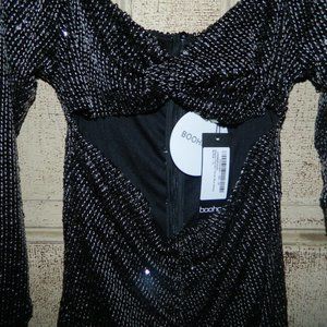 Boohoo Sequin Cut Out Twist Mini Dress Black Size 12 (BB-28)