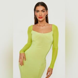 Boohoo Silky Mesh Sleeve Midaxi Women’s Dress Lime Size 10