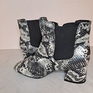 Boohoo Snake Print Chelsea Boots Women's 6 Black White Faux Leather Square Toe