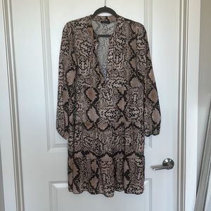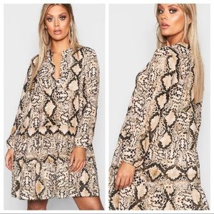 Boohoo Long Sleeve Snake Print Smocked V Neck Dress Women’s US 14 (UK Size 18)