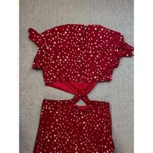 Boohoo Star Print Cut Out Skater Dress Red Gold US Size 8