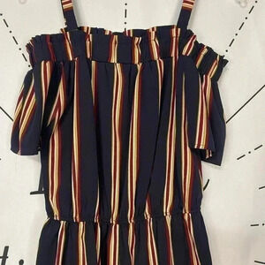 Boohoo Striped Cold Shoulder Romper