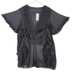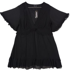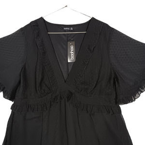Boohoo Swiss Dot Sheer Dress Size 16 Black Fully Lined V Neckline NWT