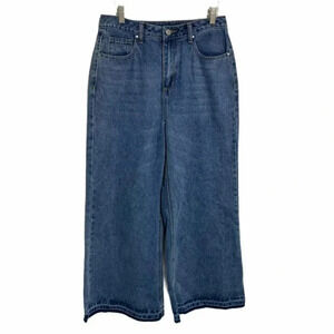 Boohoo Tall US 6 wide leg high waist raw hem cropped 26” inseam jeans
