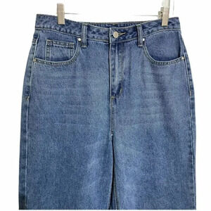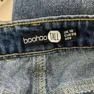 Boohoo Tall US 6 blue jeans wide leg high waist raw hem baggy goth punk trendy