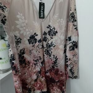 This Boohoo dress features a sophisticated sheath style with a flattering V-neckline and long sleeves, perfect for a casual outing or as a wedding guest. The tan and black color palette adds a touch of elegance, while the comfortable fit ensures ease of movement.