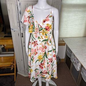 Boohoo Tasha Floral Ruffle Open Back Midi Chiffon Dress Size 6