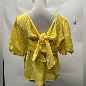 Boohoo Textured Puff Sleeve Yellow Smock Top US 8