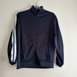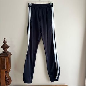 Tracksuit with side stripes, zip up front and collar! Elastic waistband with strings to adjust. 100% polyester. Only worn once and in great condition. Fits as shown/true to size, bought for a specific event and have no use for it anymore!