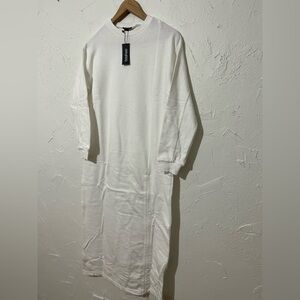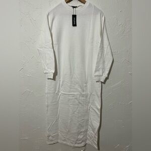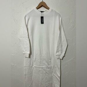 Boohoo White Long Sleeve Ruched Sweatshirt Dress Sz XS | Casual Chic Fall Outfit