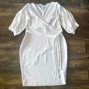 Boohoo White Midi Wrap V-neck Dress Size 20