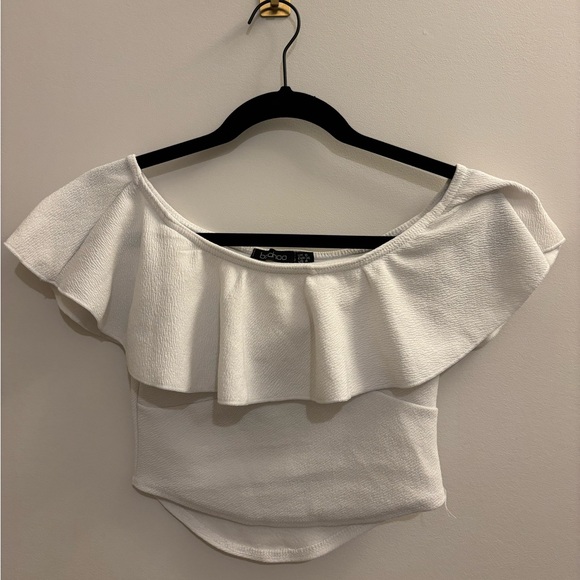 Boohoo White Ruffle Off-Shoulder Crop Top