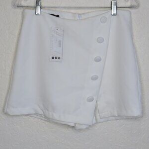 Boohoo* Women's Button Detail Backside Half Zip Wrap Front Ivory Skort~ Size 10