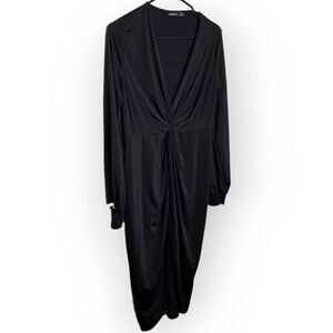 Boohoo Women's Disco Slinky Twist Front Wrap Dress in Black size 10 US