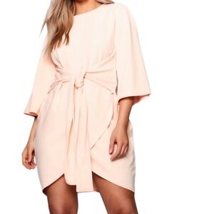Boohoo Women’s Kimono Sleeve Tie Waist Faux Wrap Dress Size 18 Blush Pink