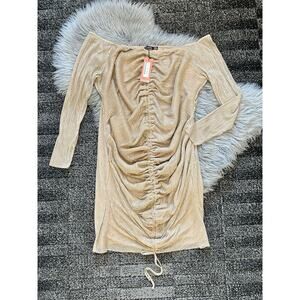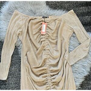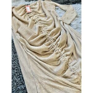 Boohoo Women's Metallic Ruched Midi Dress Gold Plus Size 26