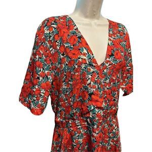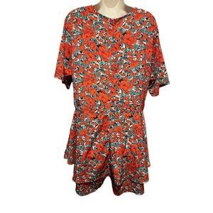 Boohoo Womens Plus Size Red Floral Wrap Skort Playsuit Romper V Neck Size 20