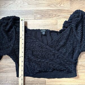Boohoo Womens Textured Crop Top Size 18 Black Puff Sleeve #Y2K #Witchy Party