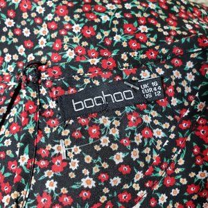 Boohoo Women's size 12 Black Floral Long Sleeve Lightweight Dress
