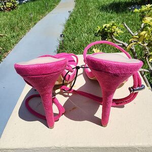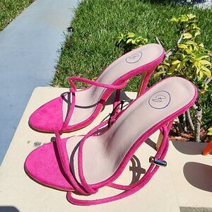 Boohoo exclusive barely there heeled sandals in Pink Strappy Womens Size 38 /7
