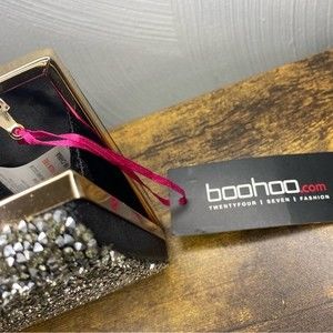 Boohoo glitter box clutch, metallic/silver, small