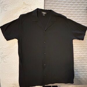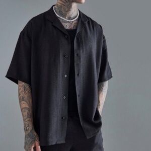 BoohooMAN Black Linen Short Sleeve Shirt-Medium