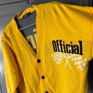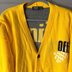 BoohooMAN Boxy Official Moto Car Badge Cardigan,Yellow Black,L
