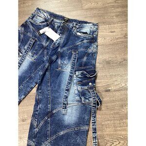 BoohooMAN Plus Baggy Rigid Strap & Buckle Detail Jeans Size 42 Indigo Streetwear