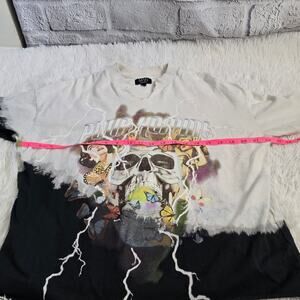 100% Cotton Men's Oversized Unique Skull Tee. The Shirt has been reworked and cropped from it's original style (please see measurements for accurate fit)
