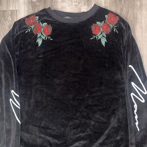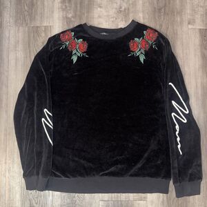 BoohooMAN Women’s Black Sweater Size Large Roses Fuzzy Soft Free Shipping
