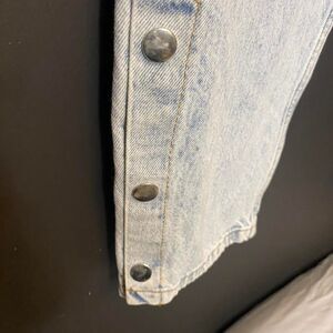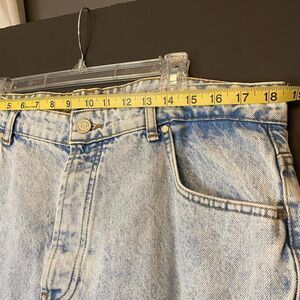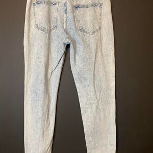 90s vibe Stonewashed Blue high-waisted mom jeans with button fly, men’s but can fit women, snap button detail at the ankle - tall inseam