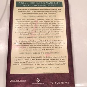 The Purpose Driven Life book. Dust jacket has some old marks on the back from storage but the book itself is new condition