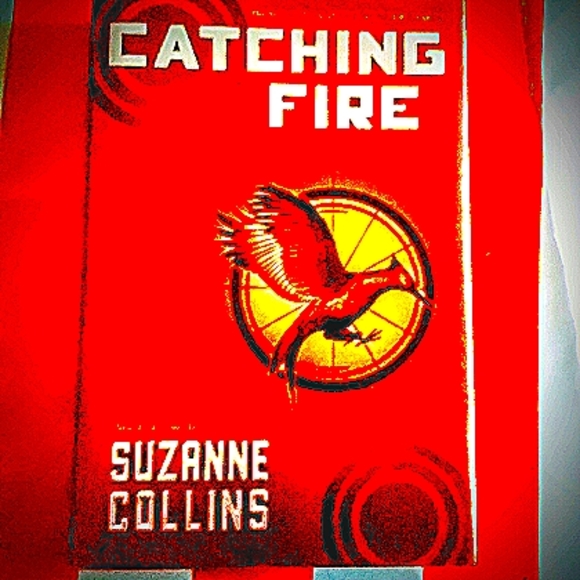 Catching Fire by Suzanne Collins. second book in the Hunger Games Series